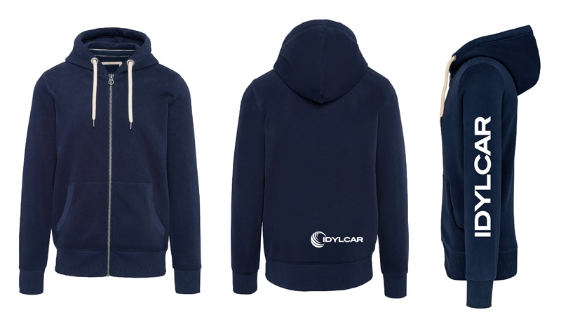 SWEAT A CAPUCHE ZIPPE HOMME MARQUAGE MANCHE + DOS